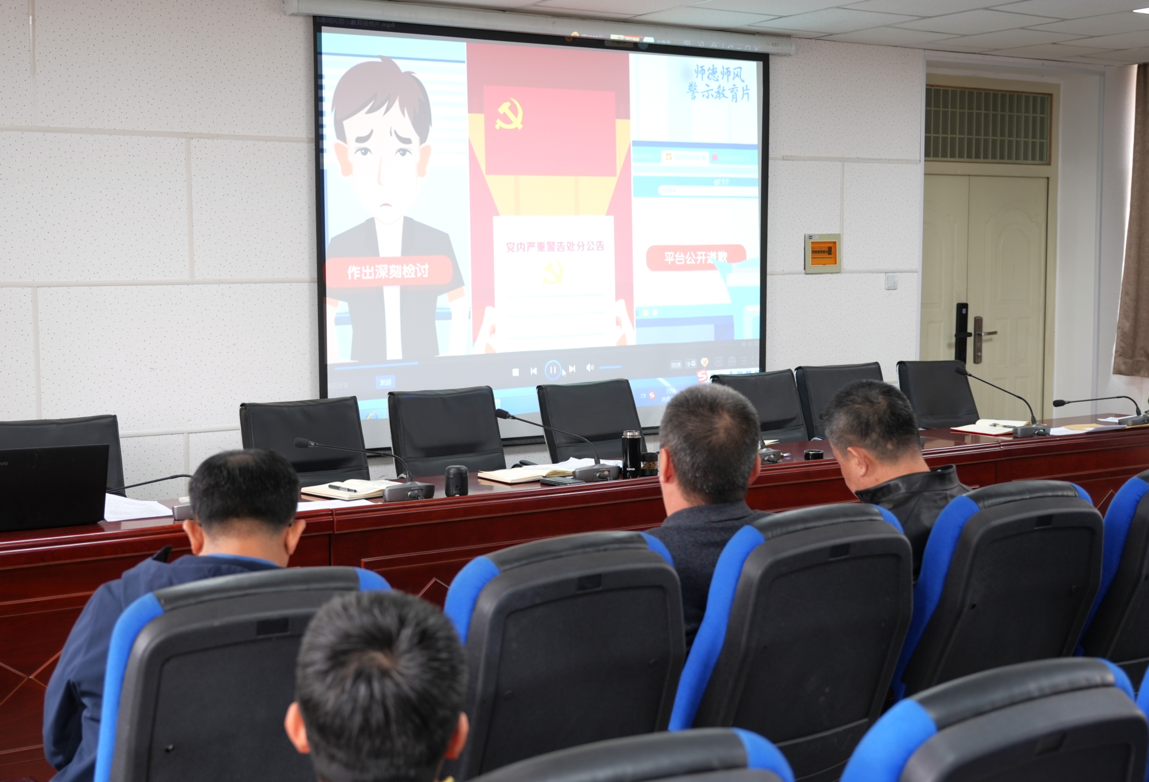 全院教师集中观看《师德师风警示教育宣传片》。影片通过真实案例剖析,深刻揭示了师德失范行为对个人、家庭和学校造成的严重危害,进一步强化了教师队伍的纪律意识和规矩意识。