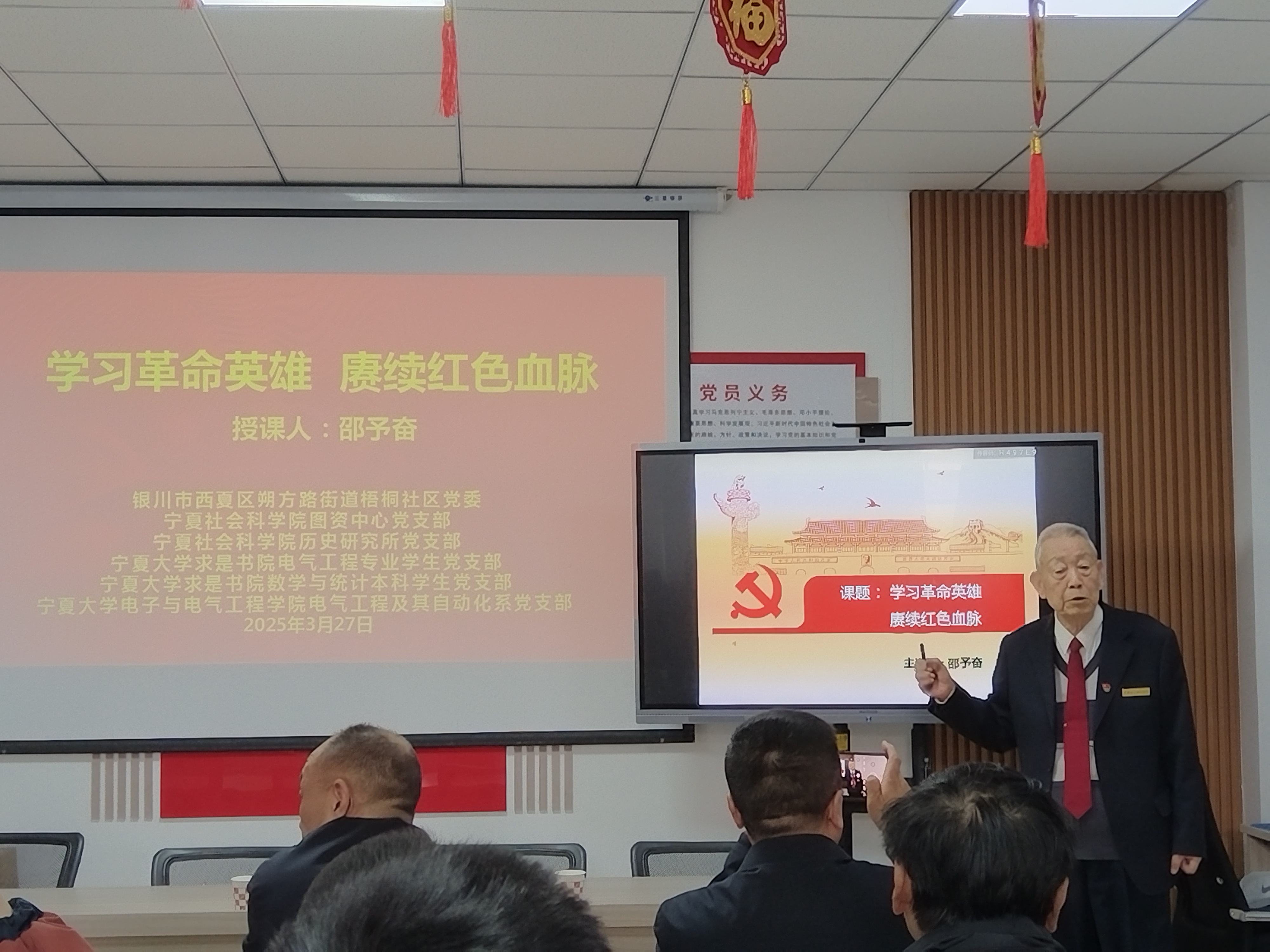 【电院讯 宋娟/文、图】为进一步推动校社联建活动走深走实,3月27日,我院电气工程及其自动化系党支部联合求是书院电气工程专业本科学生党支部、数学与统计本科学生党支部走进西夏区梧桐社区,携手开展“聆听革命故事 追寻红色记忆”——缅怀革命先烈主题党日活动。