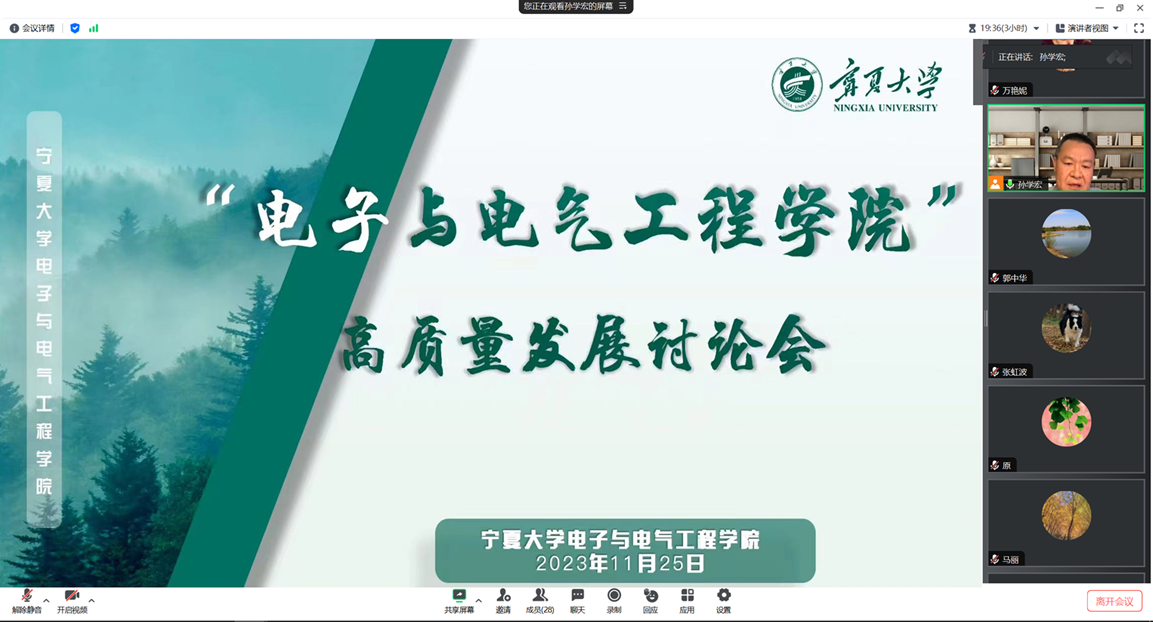 【电院讯 万艳妮/文 马辽/图】为进一步凝聚力量、开阔思路、谋划学院未来发展目标,推动学院事业高质量发展,11月25日晚,我院线上召开学院高质量发展讨论会。学院特邀学校学术副校长、数理与信息学部部长王青云,研究生院院长车进参加会议,就学院高质量发展进行指导。会议由学院院长孙学宏主持。