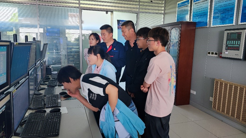 座谈会后,公司组织我院教师先后参观风电运维调度中心、风电基地、光伏基地和110kV升压站,并在参观过程中为我院人员讲解风电、光伏实际运行场景,并就目前现场运维环节中存在的科研问题与我院人员展开了深入交流。