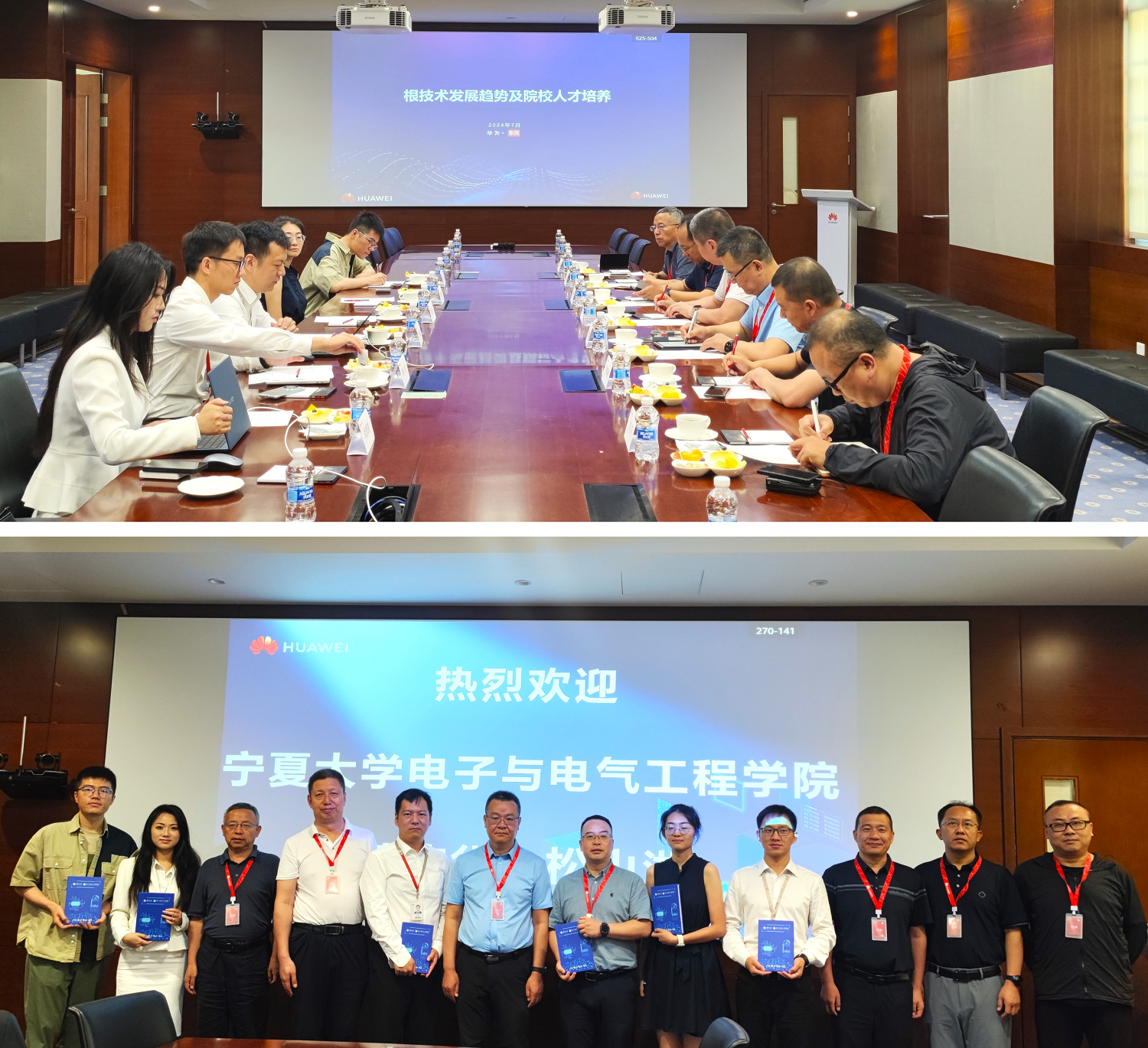 马武军对我院一行表示热烈欢迎,简要介绍了华为教育业务在宁夏的开展情况。浙江华为院校解决方案专家刘毅就根技术发展趋势及院校人才培养,从中国数字经济发展的现状与关键要素、华为根技术构建第二套ICT生态体系、华为根技术人才生态构建、基于产业到专业的院校人才岗位分析、华为根技术人才培养方案及课程体系五个方面进行了详细介绍。