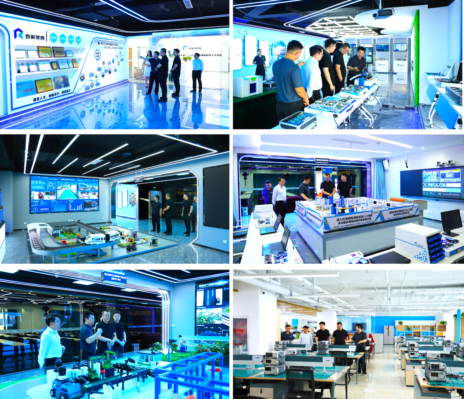 在百科荣创(山东)科技发展有限公司总经理张明伯的陪同下,学院一行参观了百科荣创“吃、住、学、研、创、用”一体化实习实践产教融合服务基地,深度调研了该公司开展学生实习实训的工作条件。参观过程中,双方就学生实习实训项目开展、项目应用场景、电子设计竞赛辅导培训等方面进行了深入交流。