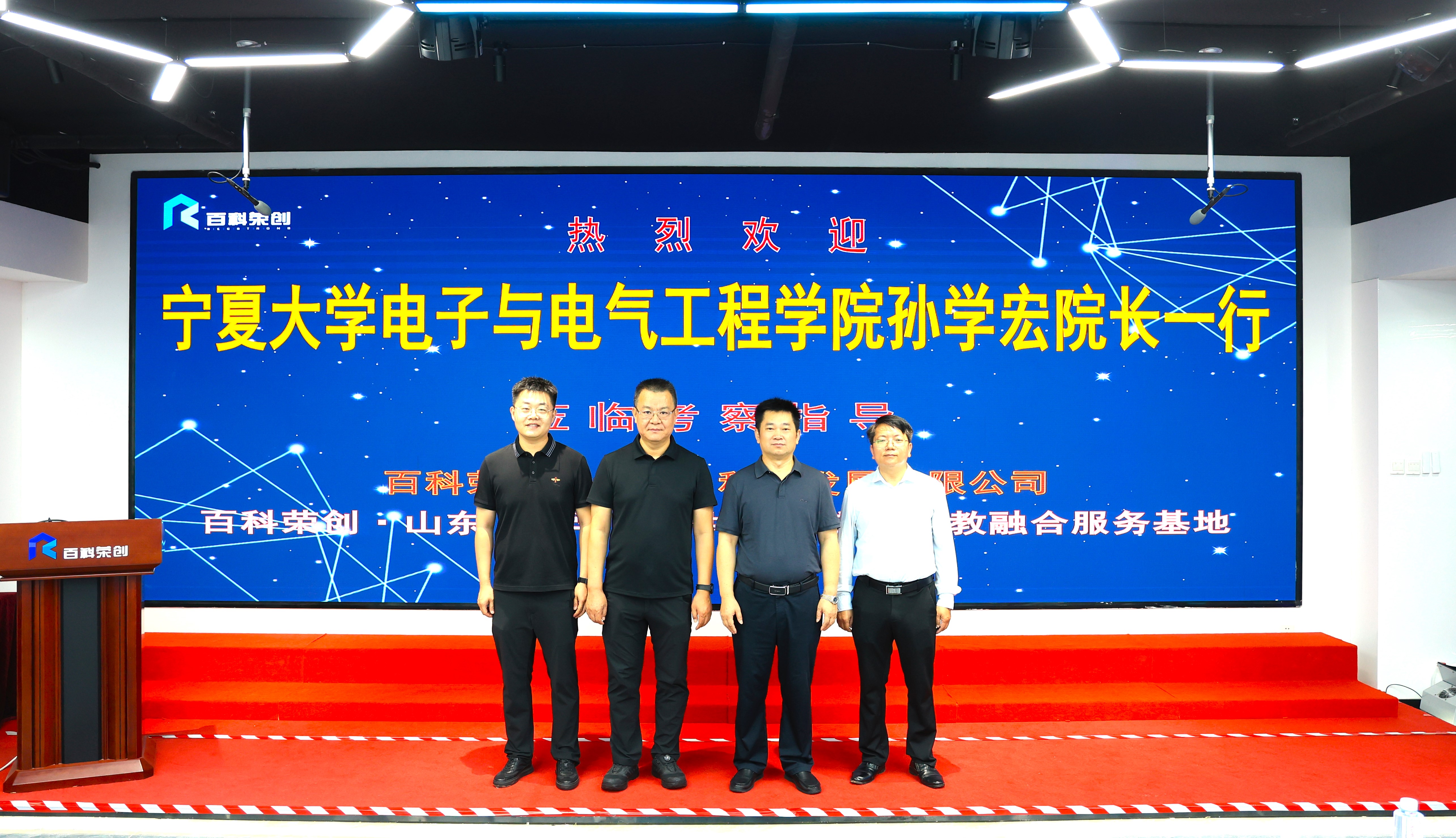 【电院讯 陈鹏/文、图】为进一步深化校企合作,拓展学院实习实训基地,提升人才培养质量,8月19日,我院院长孙学宏一行走进百科荣创(山东)科技发展有限公司进行调研考察,开展访企拓岗工作。