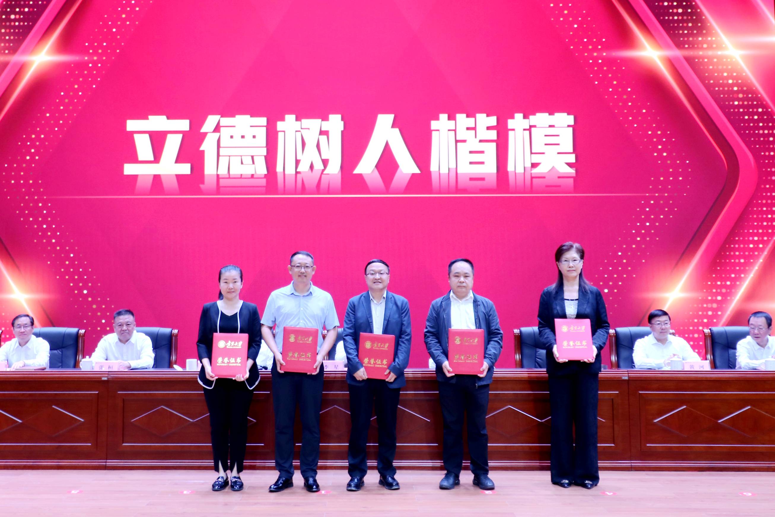 我院从教满35年教师汤全武教授,“立德树人楷模”获奖教师汪西原教授,全国和全区高校教师教学创新大赛获奖教师、全国和全区青年教师教学基本功大赛获奖教师宋佳乾等三位教师获表彰现场上台领奖,青年博士陈鹏参加3003新葡的京新入职教师入职宣誓仪式。