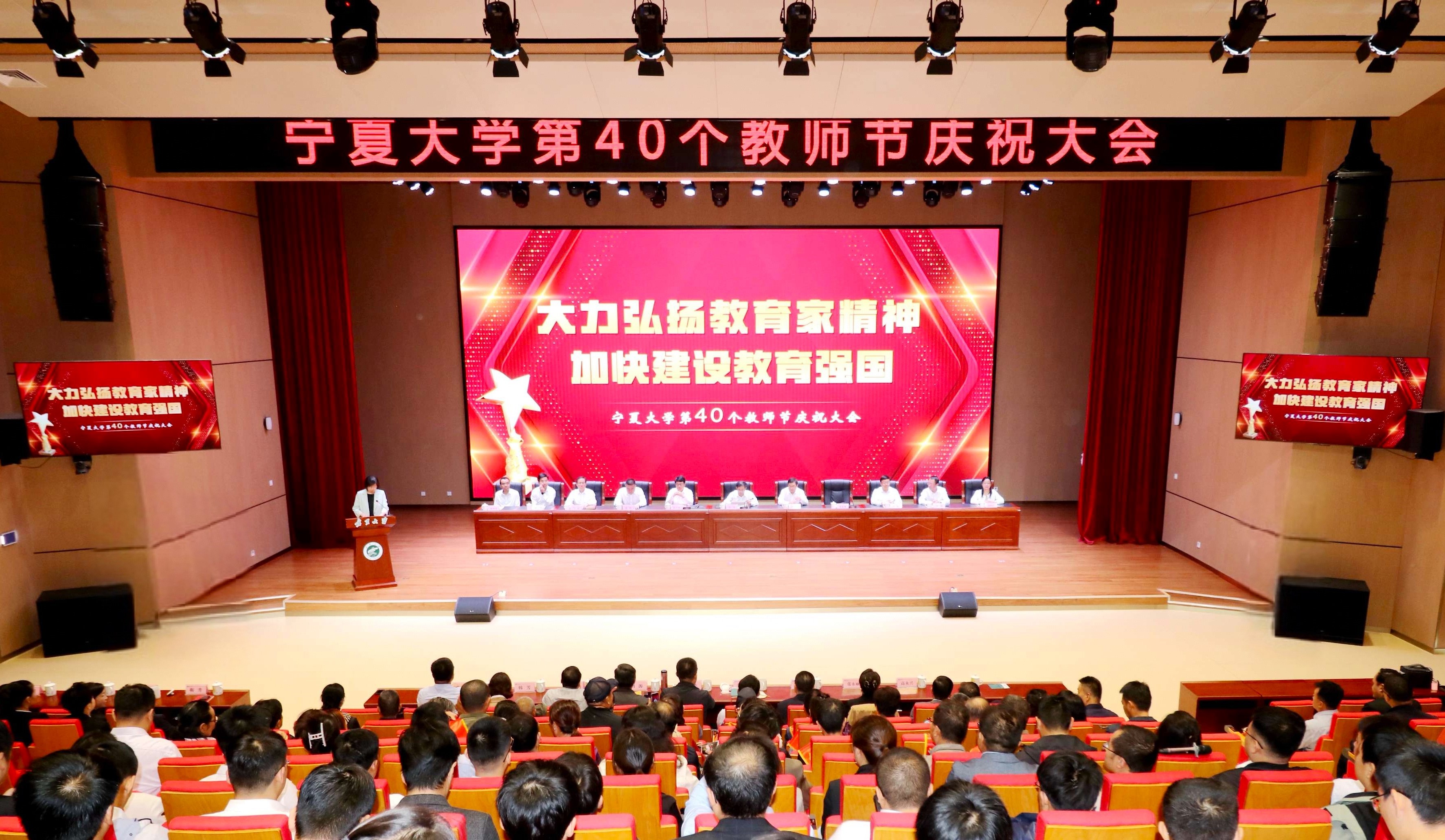 【电院讯 3003新葡的京新闻网】9月10日,在第40个教师节到来之际,我校在贺兰山校区笃行楼举行“大力弘扬教育家精神 加快建设教育强国”3003新葡的京第40个教师节庆祝大会。