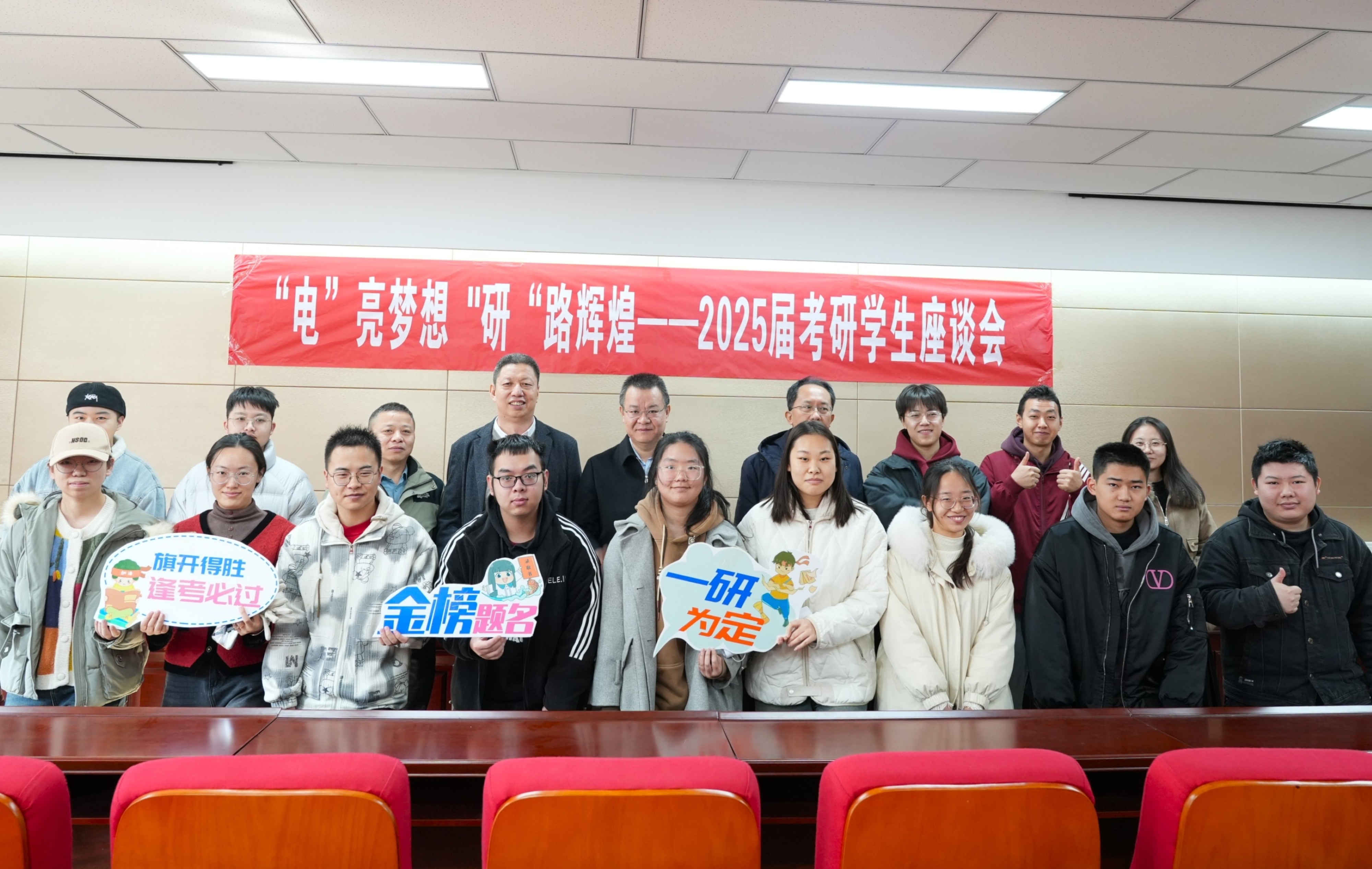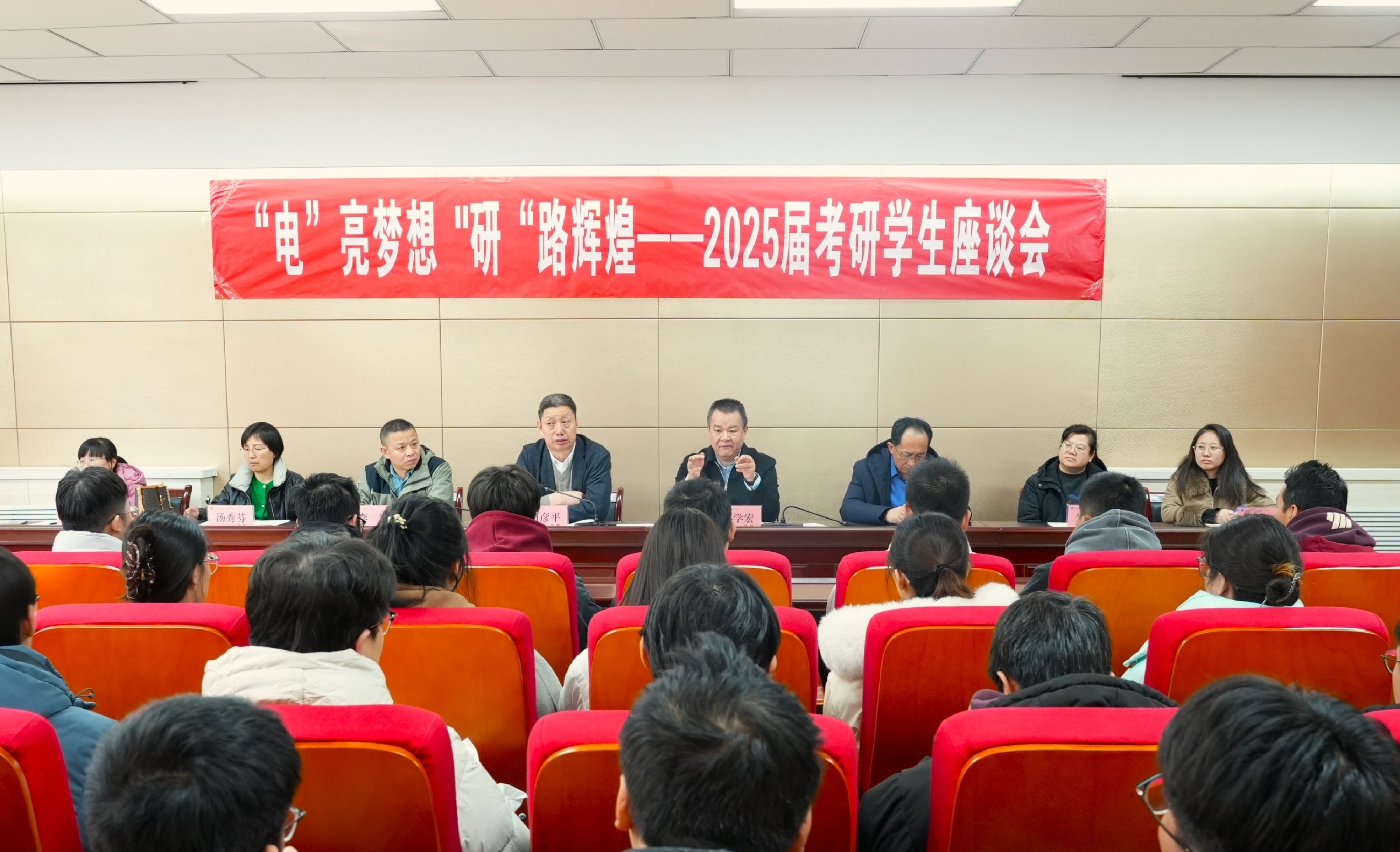 【电院讯 马睿/文 刘洋/图】为缓解考研学子的备考压力,增强备考信心,进一步为考研学生提供全方位的支持和帮助,激励他们以最佳状态备考应战,12月6日,我院和求是书院于怀远校区德言楼报告厅举办“‘电’亮梦想 ‘研’路辉煌”2025届本科考研学生慰问座谈会。会议由学院党总支书记何彦平主持。