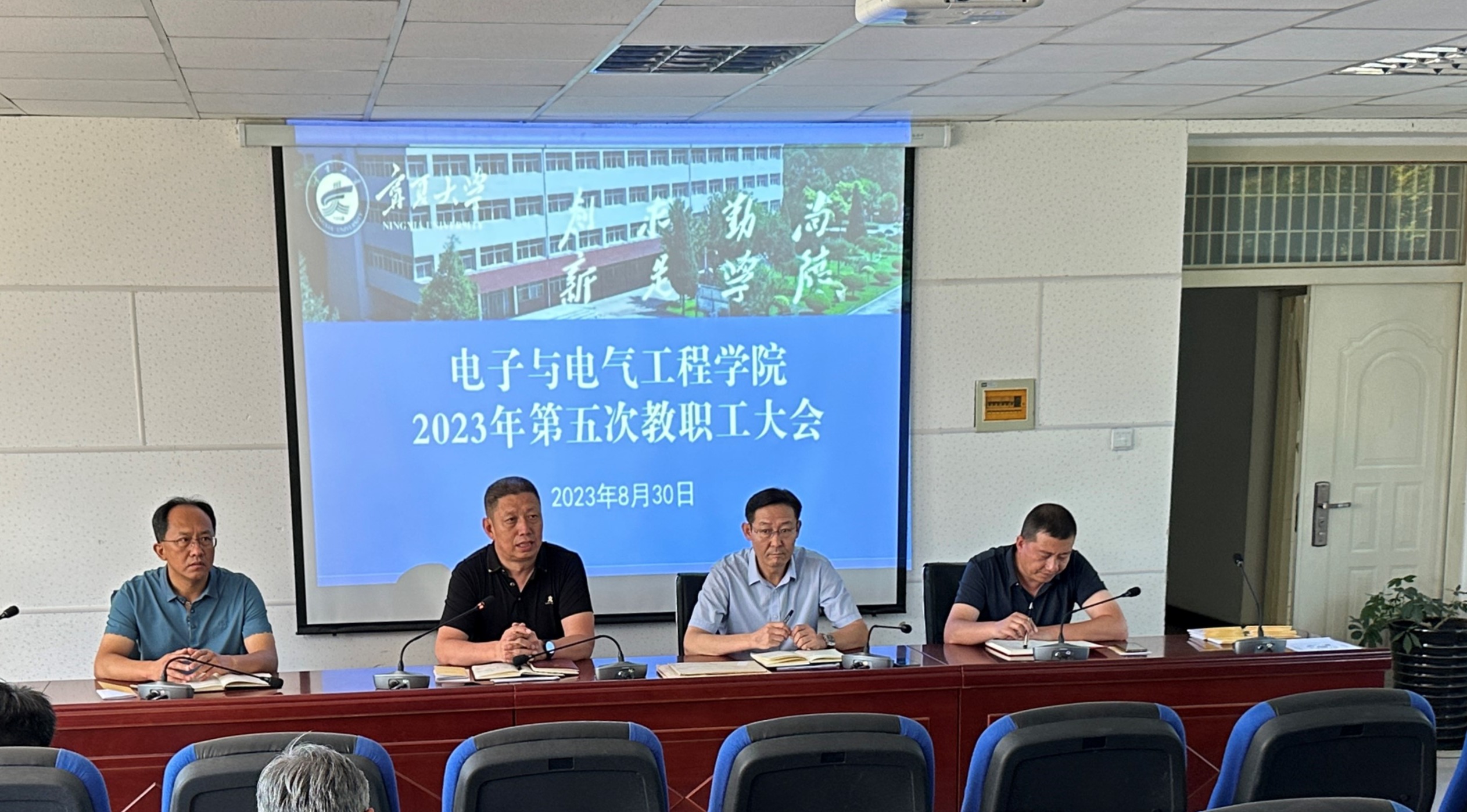 【电院讯 万艳妮/文 刘心仪/图】8月30日,我院在怀远校区博远楼召开第五次全院教职工大会暨新学期工作部署会,通报学院暑期相关工作进展情况,并对新学期工作进行部署安排。会议由学院党总支书记何彦平主持。何彦...